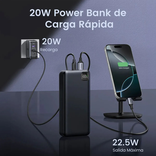 Este cargador cuenta con tecnología de carga rápida PD de 22.5W, lo que significa que tus dispositivos se cargarán de manera eficiente y veloz. Su diseño compacto y ligero lo hace perfecto para llevar en el bolso o mochila, ideal para viajes, trabajo o actividades al aire libre.